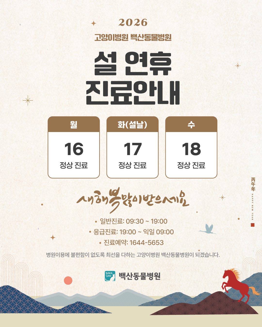 병원이용에 불편함이 없도록 최선을 다하는 고양이병원 백산동물병원이 되겠습니다.