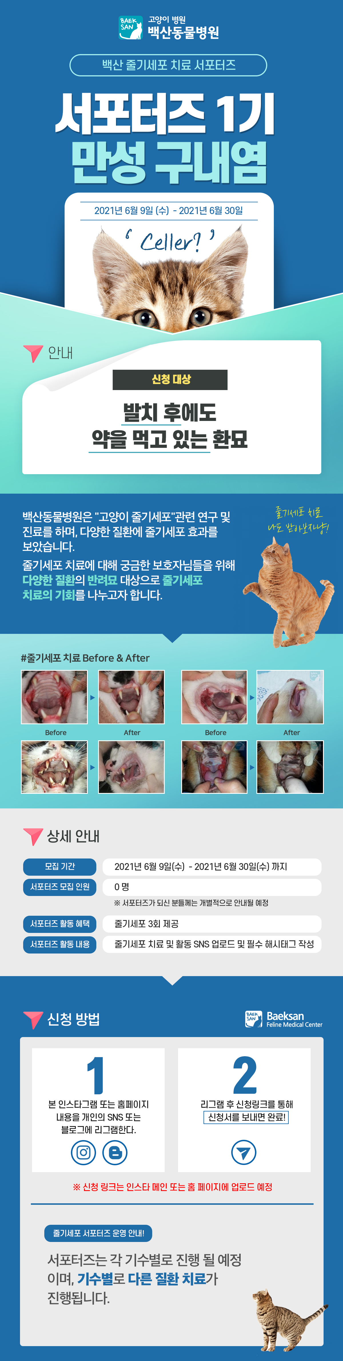 백산 줄기세포 치료 서포터즈 1기 '만성 구내염' 대상묘 모집
