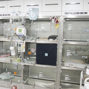 - 응급 또는 위중한 고양이환자에게 온도/습도/산소 등이 자동으로 조절되는 첨단 입원실입니다.