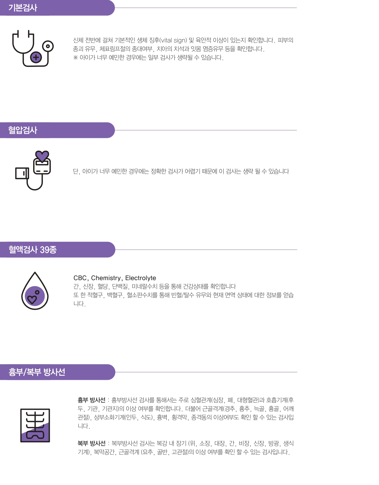 발생 빈도가 높은 질병군 중점파악 필수 검사